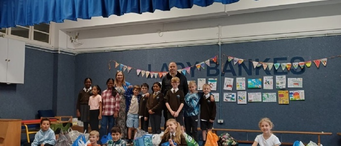 Following their assembly, 5CG helped Lawrence Rand pack up the van with our harvest donations to be delivered to the local food bank.